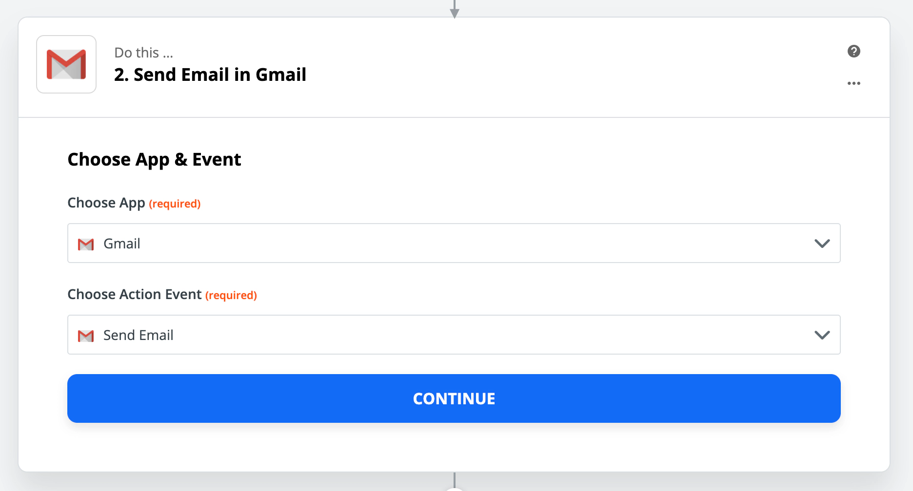 Next, choose Gmail as your “do this” action, and select Send Email as your action event: